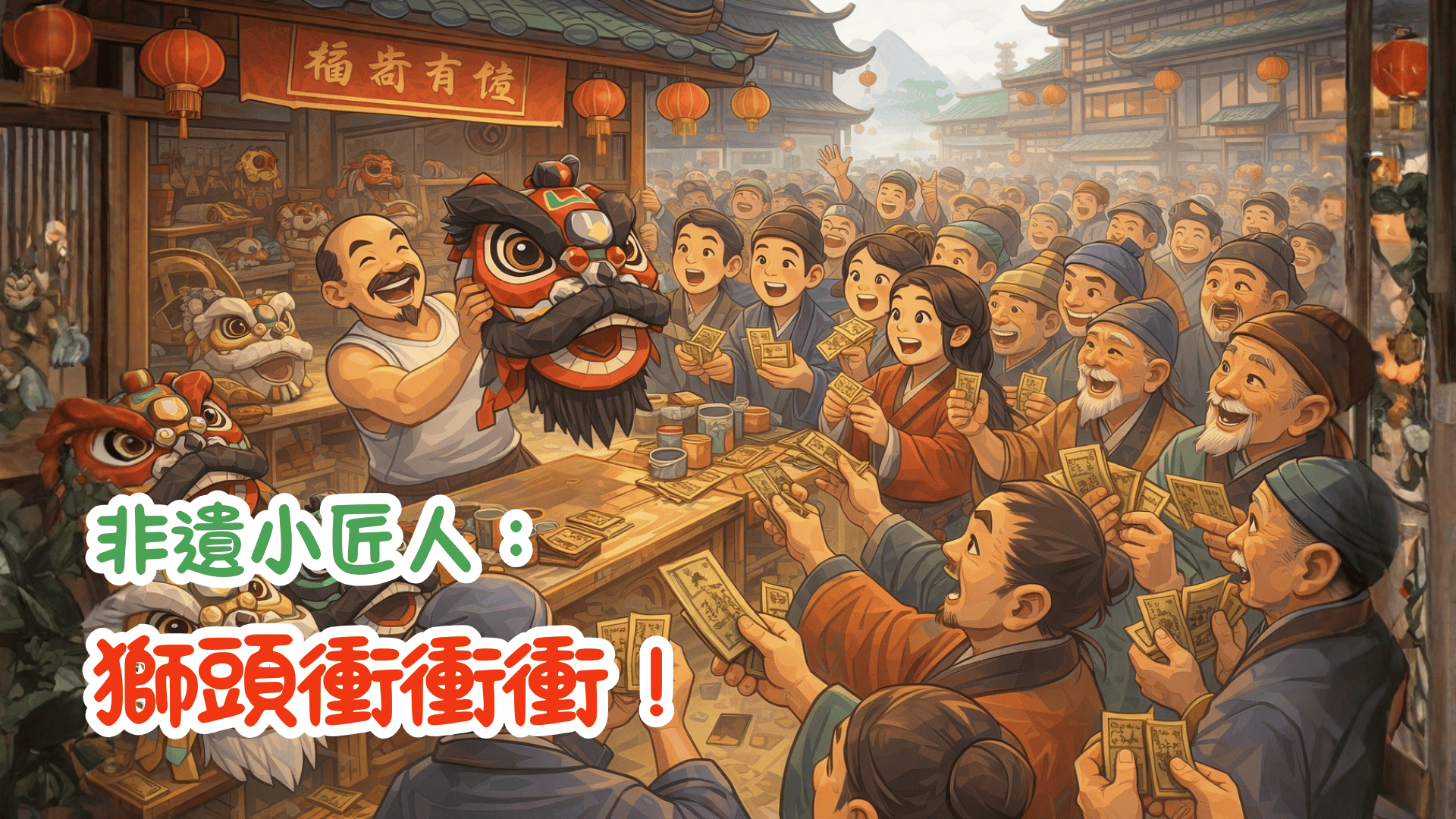 同屋企人一齊化身「非遺小匠人」,潛入佛山百年獅頭工坊,體驗手忙腳亂嘅扎作樂趣!喺遊戲入面,你唔單止可以親手由竹篾開始製作獅頭,仲可以認識劉備、關羽、張飛呢三款經典獅頭嘅獨特樣式同背後故事。一齊喺歡樂合作中,將我哋威風嘅獅頭文化,一代一代傳落去!